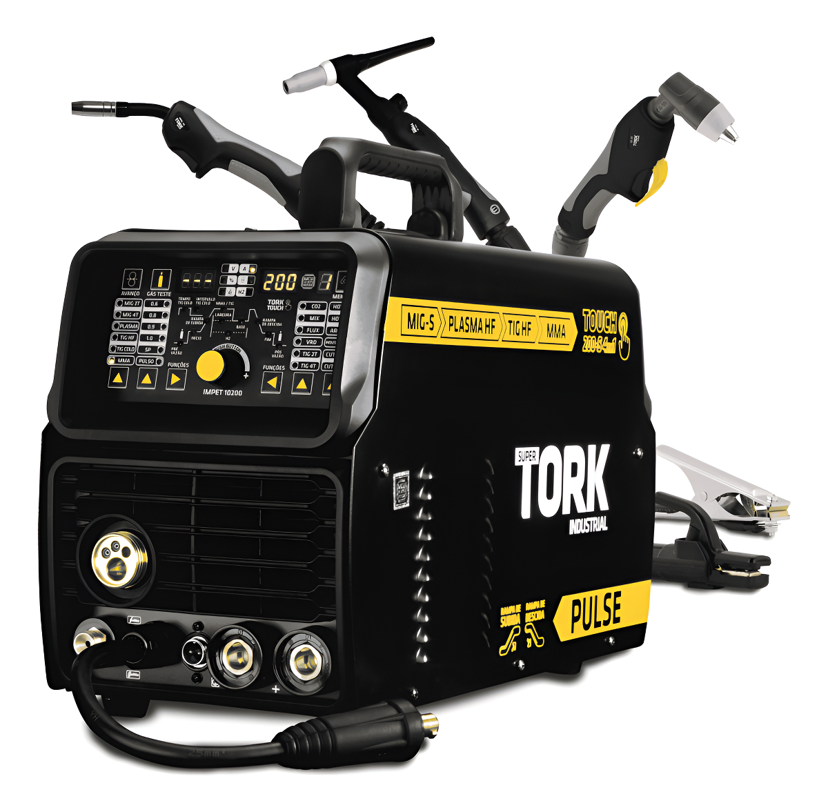 Apresentamos a Máquina de Solda e Corte Inversora TORK TOUCH 200-S 4 EM 1, equipamento profissional que integra quatro processos distintos em uma única solução versátil. Desenvolvida com tecnologia touch avançada e sistema 4 em 1, esta unidade combina Plasma, TIG, MIG/MAG e MMA em um único equipamento, oferecendo versatilidade extrema e desempenho profissional para oficinas, serralherias e indústrias que necessitam de múltiplas capacidades em um só investimento.