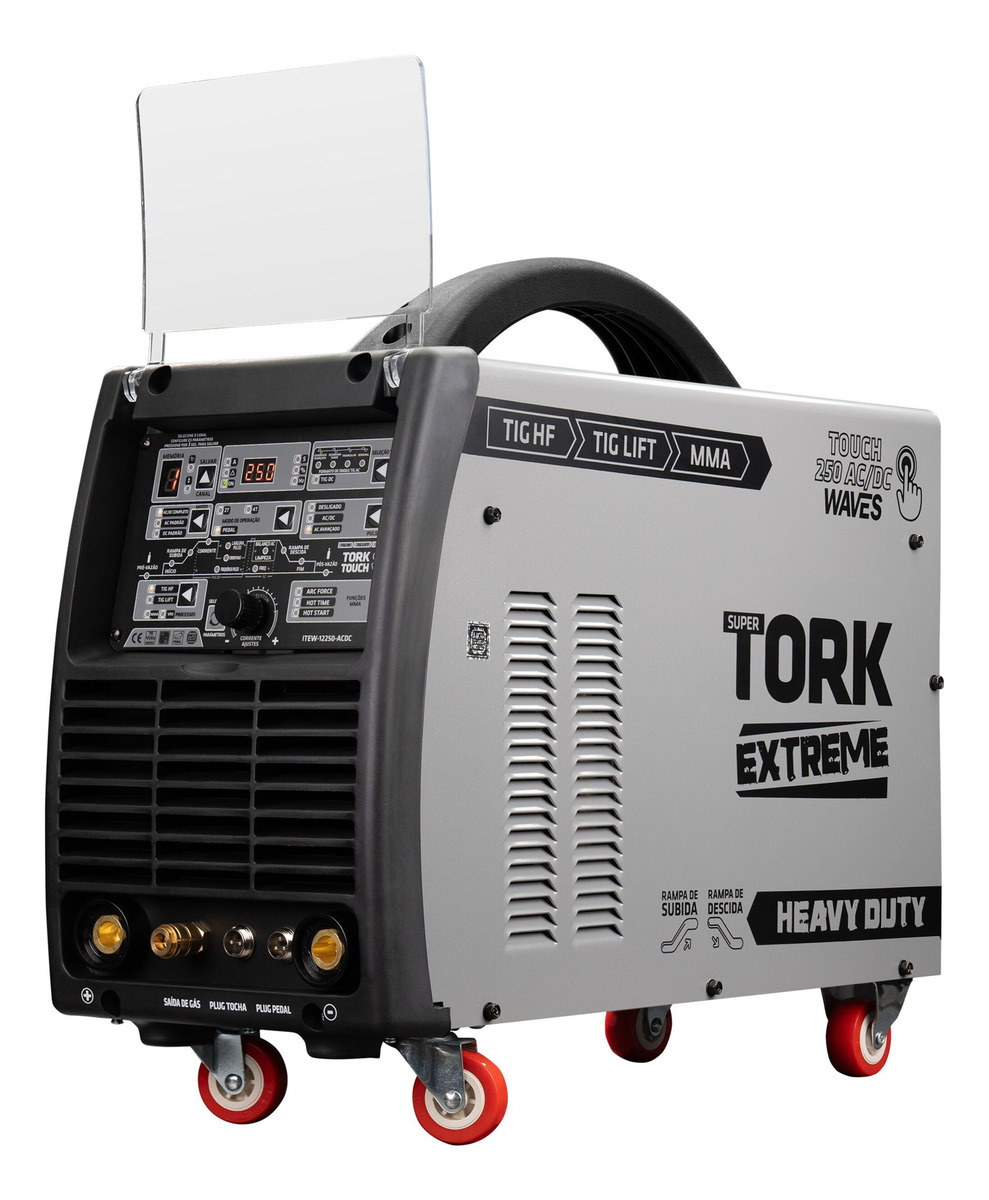 Apresentamos a Máquina de Solda TIG AC/DC Inversora 250A TORK TOUCH 250 AC/DC WAVES, a solução profissional para soldagem de precisão em alumínio, aço inox e metais não-ferrosos. Desenvolvida com tecnologia AC/DC avançada e controle digital de waveforms, esta unidade oferece controle absoluto e qualidade excepcional para oficinas especializadas, indústrias metalúrgicas e profissionais que exigem o máximo em soldagem TIG.
