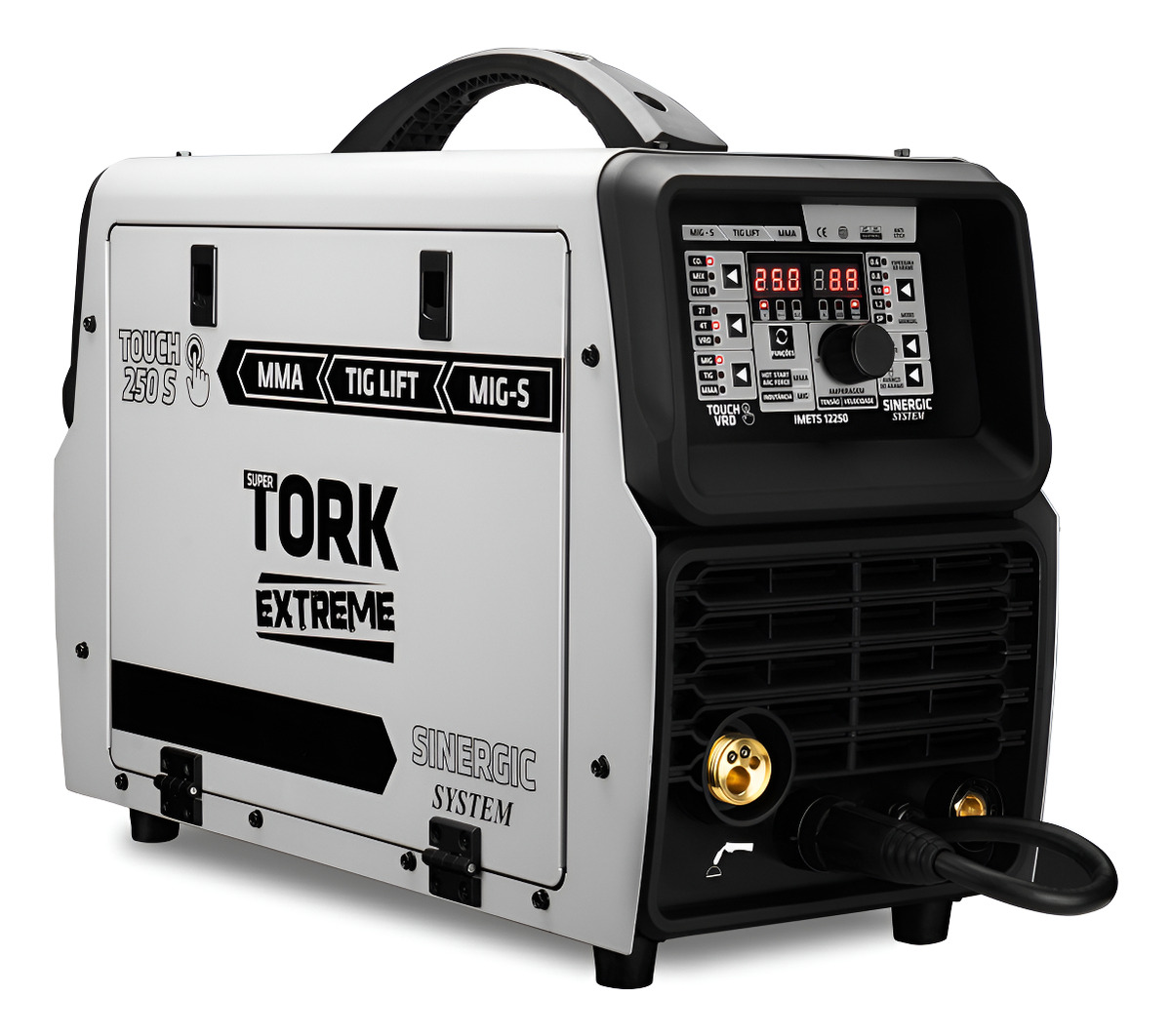 Apresentamos a Máquina de Solda Inversora Multiprocesso TORK TOUCH 250S, equipamento profissional que integra três processos de soldagem em uma solução completa de alta performance. Desenvolvida com tecnologia sinérgica digital e interface touch avançada, esta unidade oferece versatilidade extrema e desempenho superior para oficinas, serralherias e indústrias que necessitam de máxima produtividade em múltiplas aplicações.